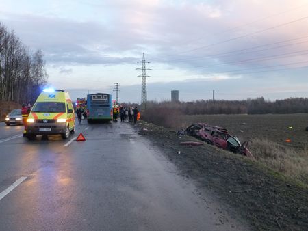Střet vozidla a autobusu v Orlové.